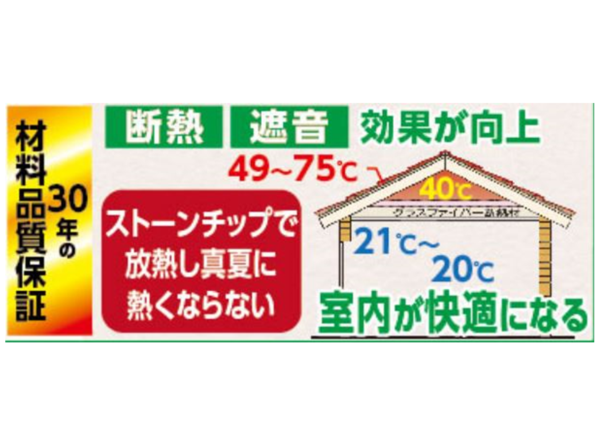 放熱が期待でき、屋根材と野地板との間にできる適度なすき間が空気層となり断熱効果をもたらします。