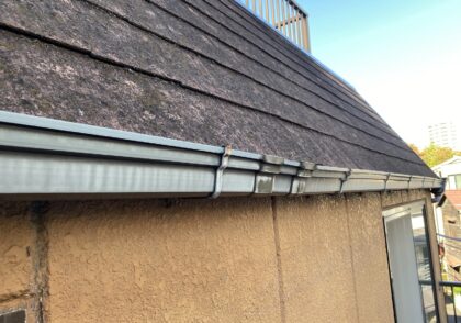 雨樋の退色や塗膜の剥がれが見受けられます。今回、外壁と併せて塗装をすることで長持ちさせることができます。