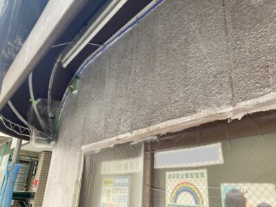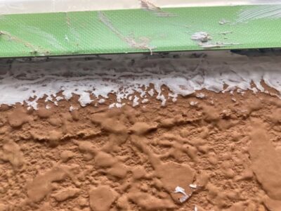 基礎塗料材はポリマーセメント系一材型補修材で特殊繊維が含まれているので付着力が強く、特殊骨材により塗膜を3ミリまで厚塗りすることも出来ます。