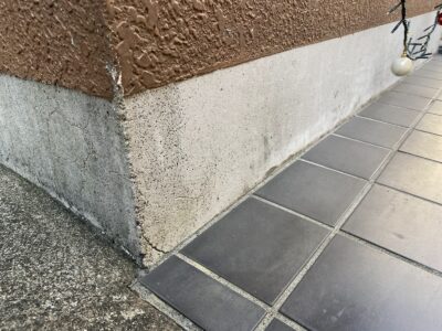 基礎の一部にひび割れが見受けられます。補修および塗装をすることで基礎の中性化を予防し、建物を長持ちさせることができます。