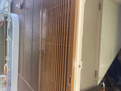 【付帯部・入口枠塗装】 鉄部塗装の目的は、塗り替えによる美観の回復だけではなく、錆による劣化を防ぐ「錆止め」が最大の目的となります。 鉄は酸化して「錆びる」と見た目が悪くなるだけでなく強度が低下し形状が崩れたり破損したりして元通りに戻りません。
