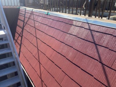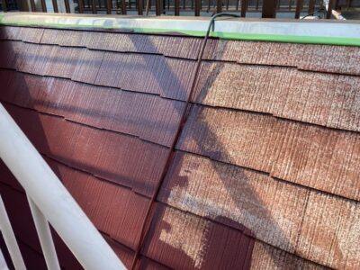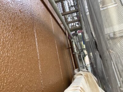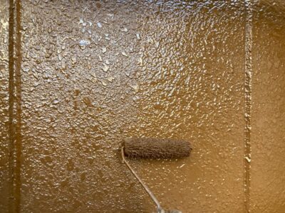 3回目の仕上げ塗装です。ムラ無く規定塗布量をしっかりと塗ります。同じ塗料を使用しても、塗り方によって耐久性が全く違ってきます。