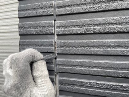 目地の両サイドにカッターで切り込みをいれてサイデイングの断面に古いシーリングが残らないように完全に撤去をします。