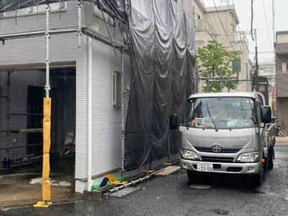 お引渡しの前に当社の厳しい施工基準にて完了検査を行い、お客様にも確認をしていただきます。細部までしっかり確認後、養生を剥がして足場を解体します。