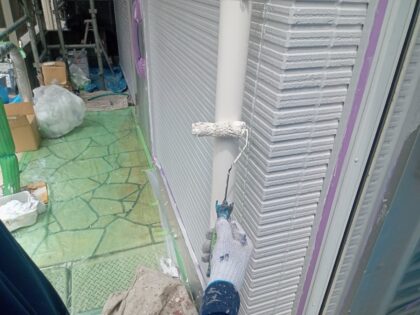 雨樋塩ビパイプの仕上げ塗装です