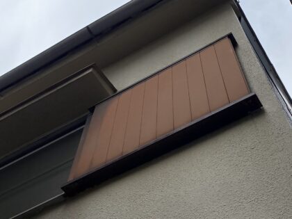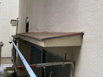 窓上部のきりよけ板金の錆や色褪せが見られました。脆くなる前に、古い塗膜ごと除去して塗装することを推奨します。