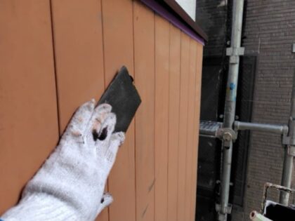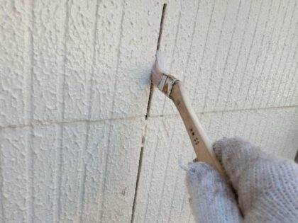 外壁にあるすき間を塞いでいきます。プライマー塗布します。