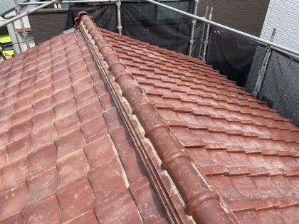 新しい屋根葺き土と漆喰を詰め、棟瓦を葺き直して完了です。