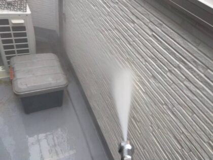塗装を行う上で必ず必要な工程の1つが外壁洗浄です。現状の外壁の汚れを洗い落とし、清潔な状態にしてから下塗りを行うことは外壁塗装の塗膜の密着性を高めるために不可欠な作業です。