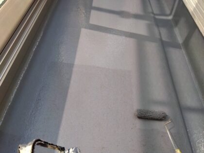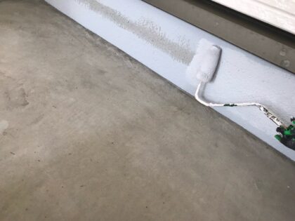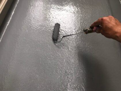 防水塗料を塗っていきます。不陸凹凸なく均一にローラー塗りとします。