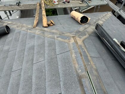 既存の棟板金を撤去します。