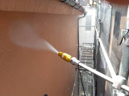 外壁、屋根、塀、玄関床、ベランダにバイオ洗浄を行います。塗装を行う上で必ず必要な工程の1つが外壁洗浄です。現状の外壁の汚れを洗い落とし、清潔な状態にしてから下塗りを行うことは外壁塗装の塗膜の密着性を高めるために不可欠な作業です。
