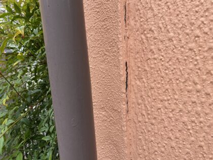 一部外壁にすき間が出来ています。このまま放置すると雨水が入り込んで建物内部を腐食させるため、早急にすき間を埋める必要があります。