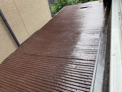 至る所で塗膜の色褪せや変色が見られます。長期間放置すると屋根材が脆くなっていくため、現段階で塗装することを推奨します。