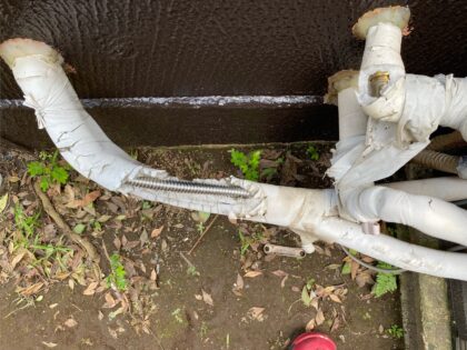 配管の欠けている箇所を補修します。