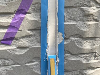 チョーキングは外壁塗料の樹脂が劣化し塗膜表面が白い粉状が発生し塗装本来の撥水性能が失われた状態です。