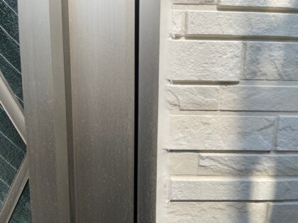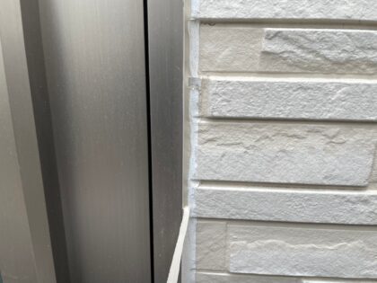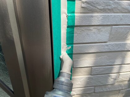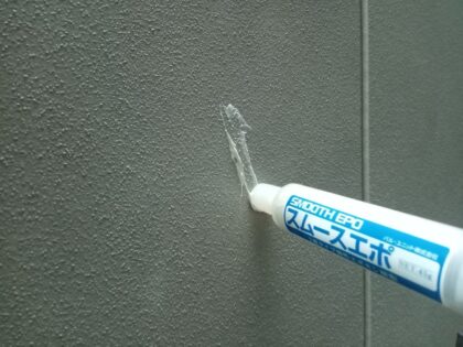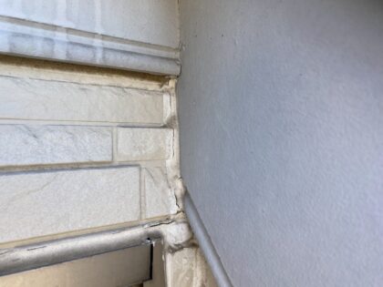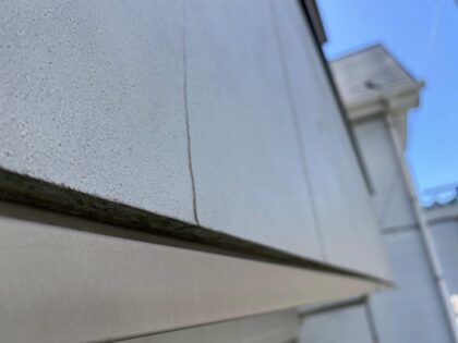 外壁材の一部にクラック(ひび割れ)が見られます。最初は細いクラックでも放置すると次第に大きくなり、建物の耐久に悪影響を及ぼすため、塗装する前にクラックを補修する必要があります。