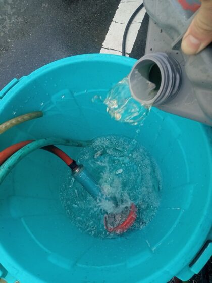 同じ箇所に長い時間噴射し続けると、外壁や屋根が水圧により傷む可能性があるため、まんべんなく噴射するようにします。