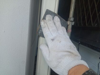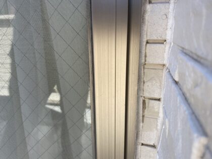 窓まわりと目地のシーリング材に亀裂や剥離等の劣化が見られます。これらの症状はシーリング材の寿命が近づいているサインなので、現段階で打ち替えることを推奨します。