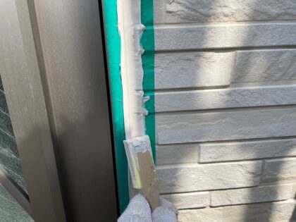 シーリングのヘラならしは、シーリング断面を確保する為に平滑に均します。窪まないように注意をします。