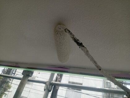 ムラ無く均一に塗ります。隅の部分などローラーが使えない狭い箇所などは、ハケでしっかりと塗り込みます。