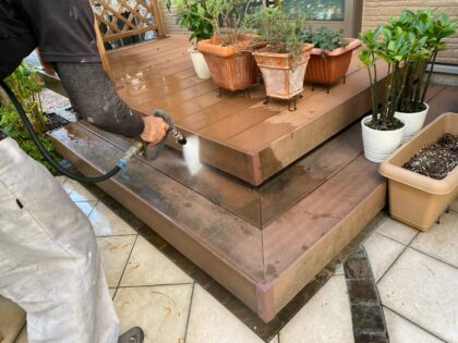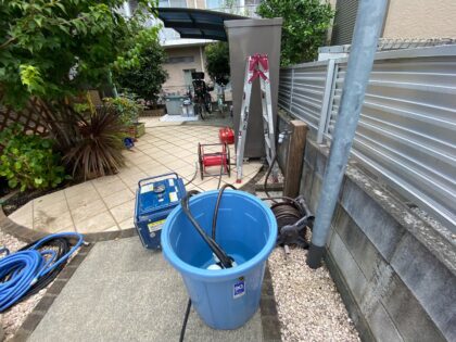塗装を行う上で必ず必要な工程の1つが外壁洗浄です。現状の外壁の汚れを洗い落とし、清潔な状態にしてから下塗りを行うことは外壁塗装の塗膜の密着性を高めるために不可欠な作業です。