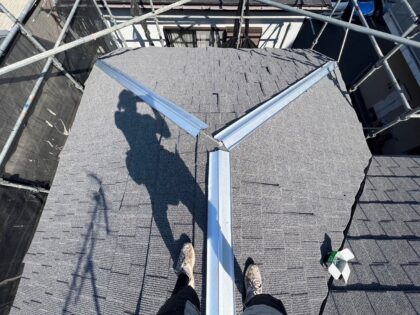 ・棟板金の極端な変形はありませんが、下地が木材なため、今回のタイミングで高耐久塗料を塗る場合は交換を推奨します。