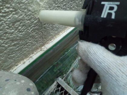 シーリングのヘラならしは、シーリング断面を確保する為に平滑に均します。