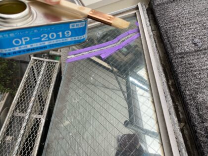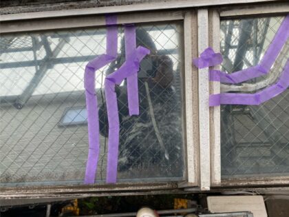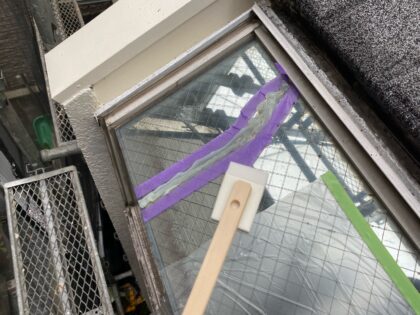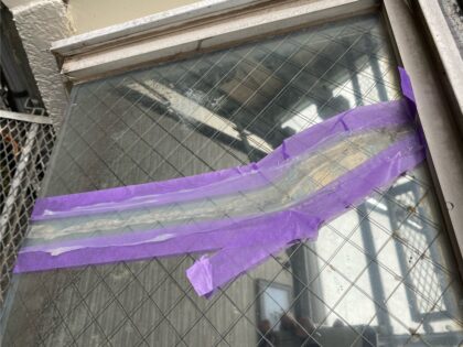 窓ガラスのひび割れ補修を行います。