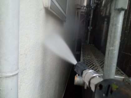 塗装を行う上で必ず必要な工程の1つが外壁洗浄です。現状の外壁の汚れを洗い落とし、清潔な状態にしてから下塗りを行うことは外壁塗装の塗膜の密着性を高めるために不可欠な作業です。