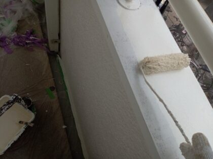 ムラ無く均一に塗ります。隅の部分などローラーが使えない狭い箇所などは、ハケでしっかりと塗り込みます。
