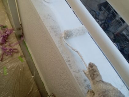 3回塗りの2回目に塗る工程になります。ローラーが使えない狭い箇所などは、ハケでしっかりと塗り込みます。