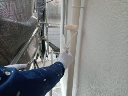 3回目に塗る仕上げ塗装です。塗料によって決まっている標準塗布量や乾燥時間をしっかりと守ることにより、強い塗膜を作ります。