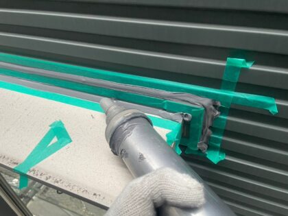 シーリングのヘラならしは、シーリング断面を確保する為に平滑に均します。窪まないように注意をします。
