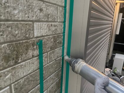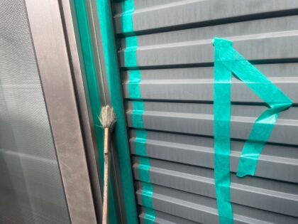 仕上げ塗装です。塗料によって決まっている標準塗布量や乾燥時間をしっかりと守ることにより、強い塗膜を作ります。ローラーが使えない狭い箇所などは、ハケでしっかりと塗り込みます。同じ塗料を使用しても、塗り方によって耐久性が全く違ってきます!