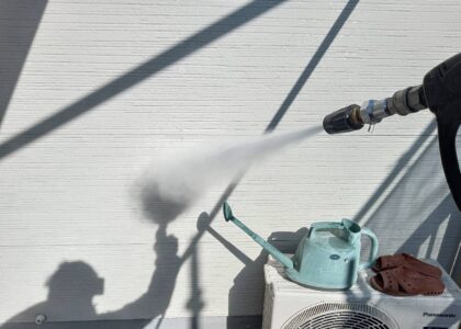 塗装を行う上で必ず必要な工程の1つが外壁洗浄です。現状の外壁の汚れを洗い落とし、清潔な状態にしてから下塗りを行うことは外壁塗装の塗膜の密着性を高めるために不可欠な作業です。