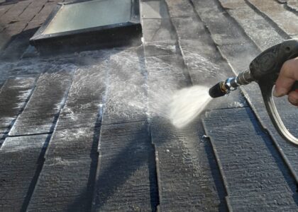 屋根の同様に洗浄していきます。