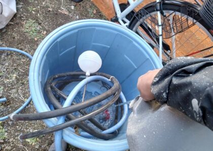 雨樋塩ビパイプの下塗りをしています。仕上げ塗料材料です。