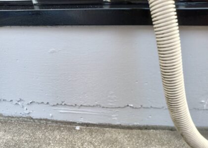 経年劣化による表面塗膜の剥がれが見られます。 このまま放置すると剥がれた箇所から雨水が浸み込み、室内で漏水が発生するため、剥がれている箇所を塗装することで事前に漏水を防ぎます。