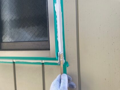 シーリングのヘラならしは、シーリング断面を確保する為に平滑に均します。窪まないように注意をします。