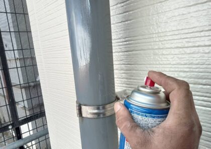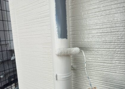 雨樋塩ビパイプの仕上げ塗装です