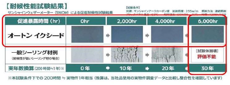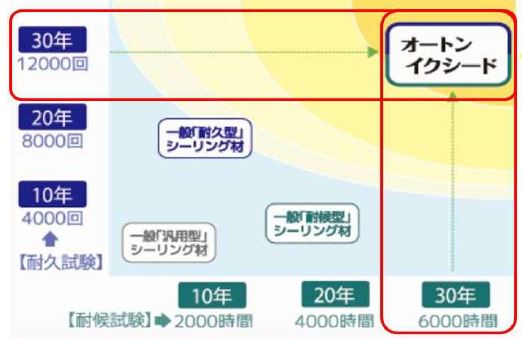 高耐久シーリングイクシード Point1.変わらない柔軟性 Point2.優れた耐久性・耐候性 Point3.優れた意匠性