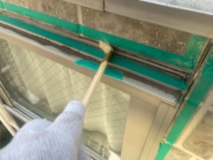 今回の工事では、外壁目地だけでなく窓まわり等もシール処理を行います。