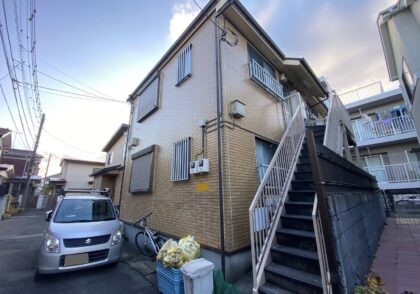 外壁塗装工事 クリア塗装 屋根塗装工事 階段タキステップ タキストロンシート貼り 西東京市谷戸町Sアパート
