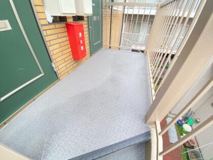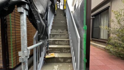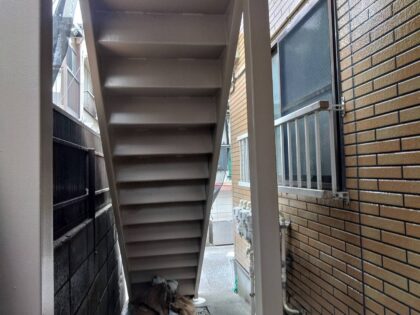 外壁塗装工事 クリア塗装 屋根塗装工事 階段タキステップ タキストロンシート貼り 西東京市谷戸町Sアパート