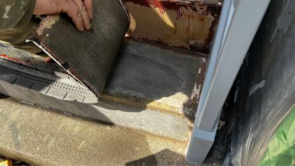階段部分の既存シートを撤去します。