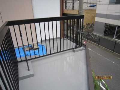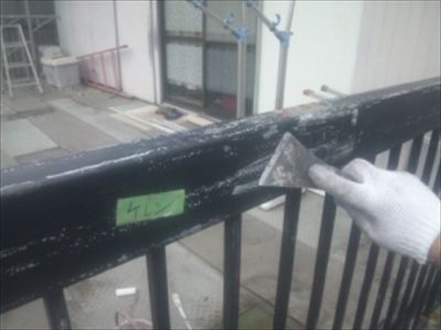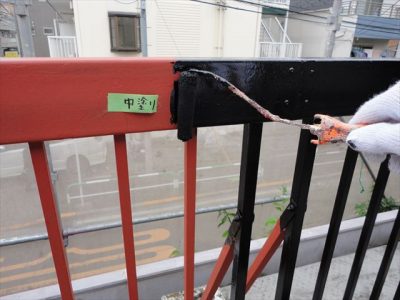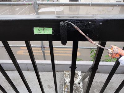 外壁塗装工事 パネルジョイント部のシーリング 鉄手摺塗装 同じ色で塗り直し、鮮やかで新築のような見た目