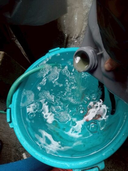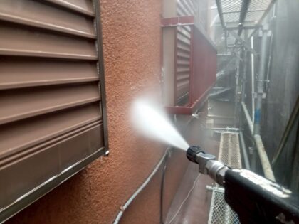 塗装を行う上で必ず必要な工程の1つが外壁洗浄です。現状の外壁の汚れを洗い落とし、清潔な状態にしてから下塗りを行うことは外壁塗装の塗膜の密着性を高めるために不可欠な作業です。