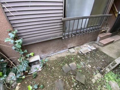 コケやカビの発生は、外壁材が濡れた後に乾きにくい状態であることを示しており、このまま放置すると外壁材自体の反り等の劣化が発生します。 高圧洗浄できれいに落として塗装する必要があります。
