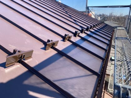 嵌合式の縦葺きガルバリウム鋼板製の屋根をご提案しました。
